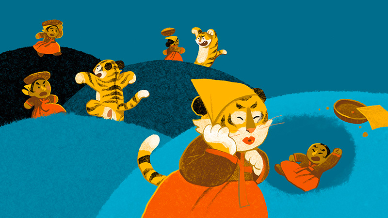 Where did the sun and the moon come from? Here is a story about an old mother, her two children and a hungry tiger...