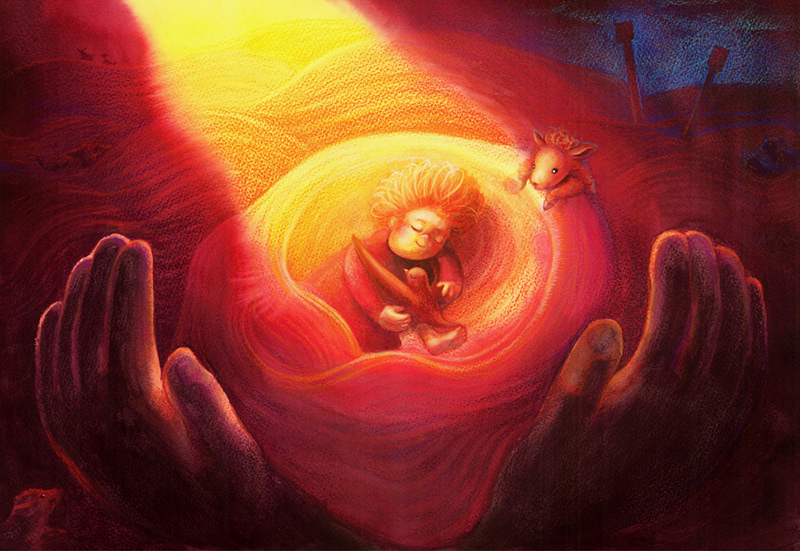 Hulpy is a nasty little monster. He lives alone in a paper-folded garden. One day, Hulpy finds a strange little fluff in the dark corner of his perfect forest.